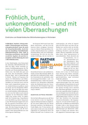 Fröhlich, bunt, unkonventionell – und mit vielen Überraschungen : Eindrücke vom Niederländischen Bibliothekskongress in Rotterdam / Barbara Lison, Leitende Bibliotheksdirektorin der Stadtbibliothek Bremen