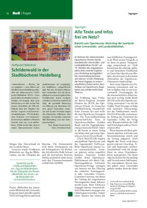 Alle Texte und Infos frei im Netz? : Bericht vom OpenAccess-Workshop der Saarländischen Universitäts- und Landesbibliothek / Gina Dinges, FaMI-Auszubildende an der SULB Saarbrücken