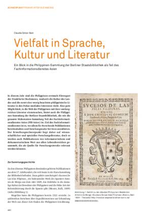 Vielfalt in Sprache, Kultur und Literatur : ein Blick in die Philippinen-Sammlung der Berliner Staatsbibliothek als Teil des Fachinformationsdienstes Asien / Claudia Götze-Sam