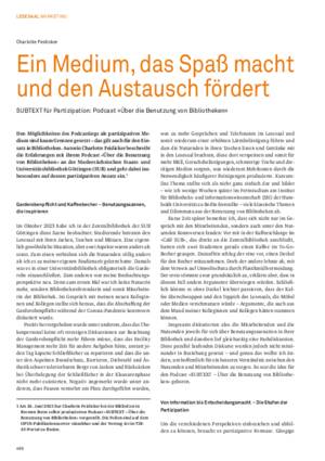 Ein Medium, das Spaß macht und den Austausch fördert : SUBTEXT für Partizipation: Podcast »Über die Benutzung von Bibliotheken« / Charlotte Feidicker