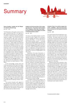 Einblicke in Leben, Sprache und Kultur Deutschlands : die Bibliothek des Goethe-Instituts Philippinen bietet weit mehr als Medien ; ein integrativer und für alle zugänglicher Ort des Wissens / Diane Katrina Lozares