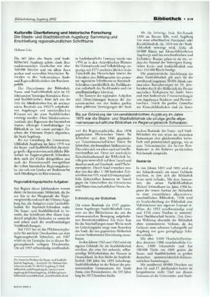 Kulturelle Überlieferung und historische Forschung : die Staats- und Stadtbibliothek Augsburg: Sammlung und Erschließung regionalkundlichen Schrifttums / Helmut Gier