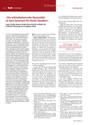 »Die bibliothekarische Neutralität ist kein Synonym für Nicht-Handeln« : Jorge Candás Romero fordert klare ethische Leitlinien als nützliches Werkzeug für die tägliche Arbeit / das Interview führte und übersetzte Laura Held, Akribie-Mitglied und Leiterin der Bibliothek der Kunst- und Ausstellungshalle in Bonn