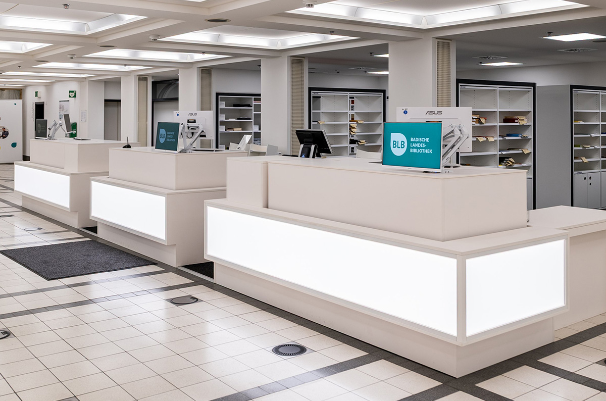 Nach vielen Jahren diverser Behelfslösungen präsentiert sich das Erdgeschoss der Badischen Landesbibliothek nun als einheitlich gestalteter, hochwertig möblierter Benutzerbereich mit hoher Aufenthaltsqualität. Die Badische Landesbibliothek bedankt sich vielmals bei allen, die daran gearbeitet haben, das attraktive Konzept für die Nutzer/-innen umzusetzen.