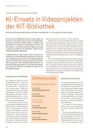 KI-Einsatz in Videoprojekten der KIT-Bibliothek : Karlsruher Studierende können schneller und gezielter in Filmmaterial recherchieren / Uwe Dierolf, Lukasz Koszyk, Tobias Kurze, Udo Willke