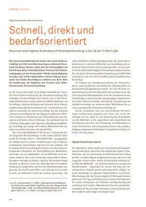 Schnell, direkt und bedarfsorientiert : warum es einen eigenen Arbeitsbereich Personalentwicklung in der UB der FU Berlin gibt / Sigrid Abenhausen, Simone Schütte