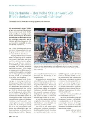 Schlagwort(e): Exkursion, Niederlande, Berufsverband Information Bibliothek. Landesgruppe Sachsen-Anhalt