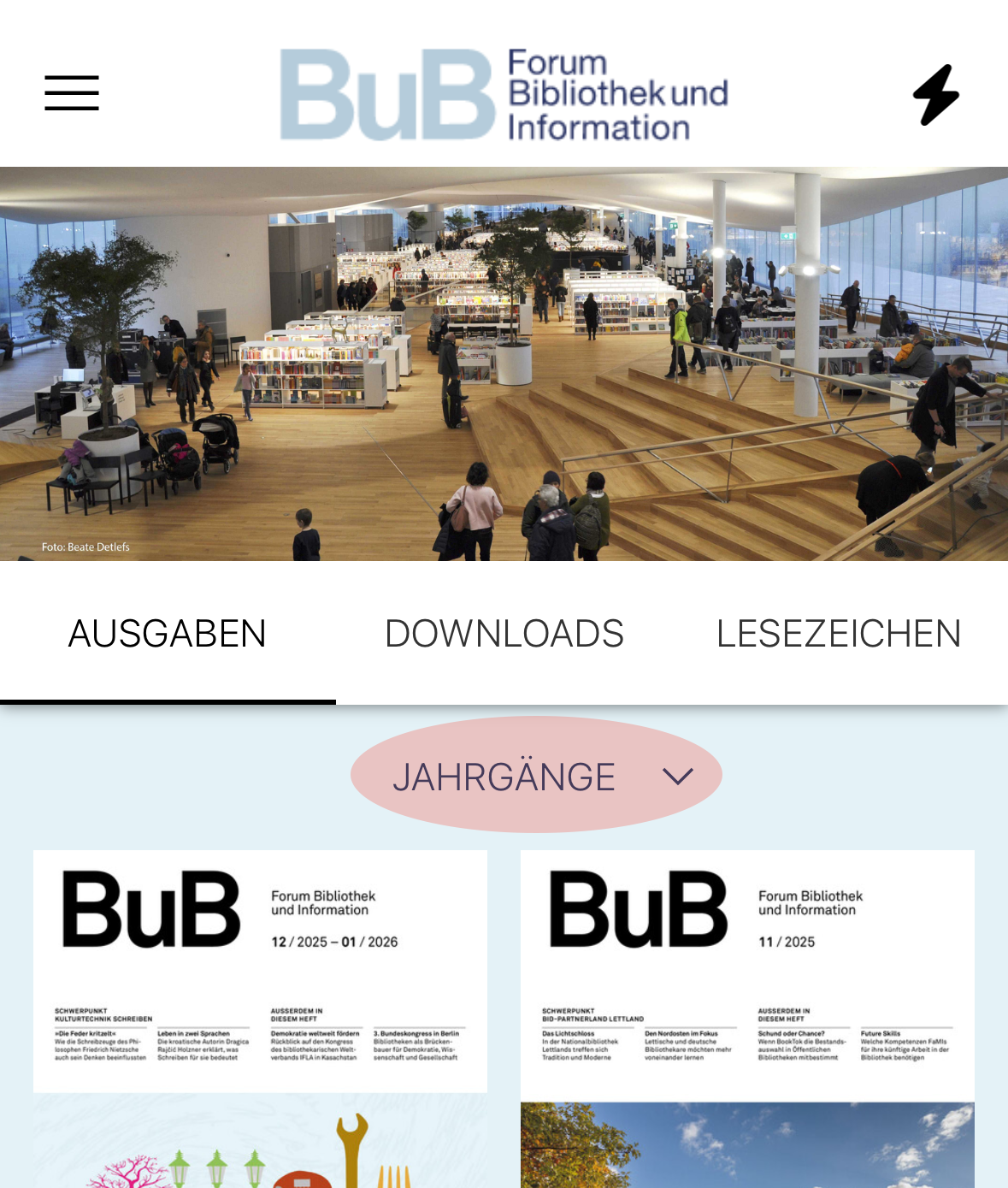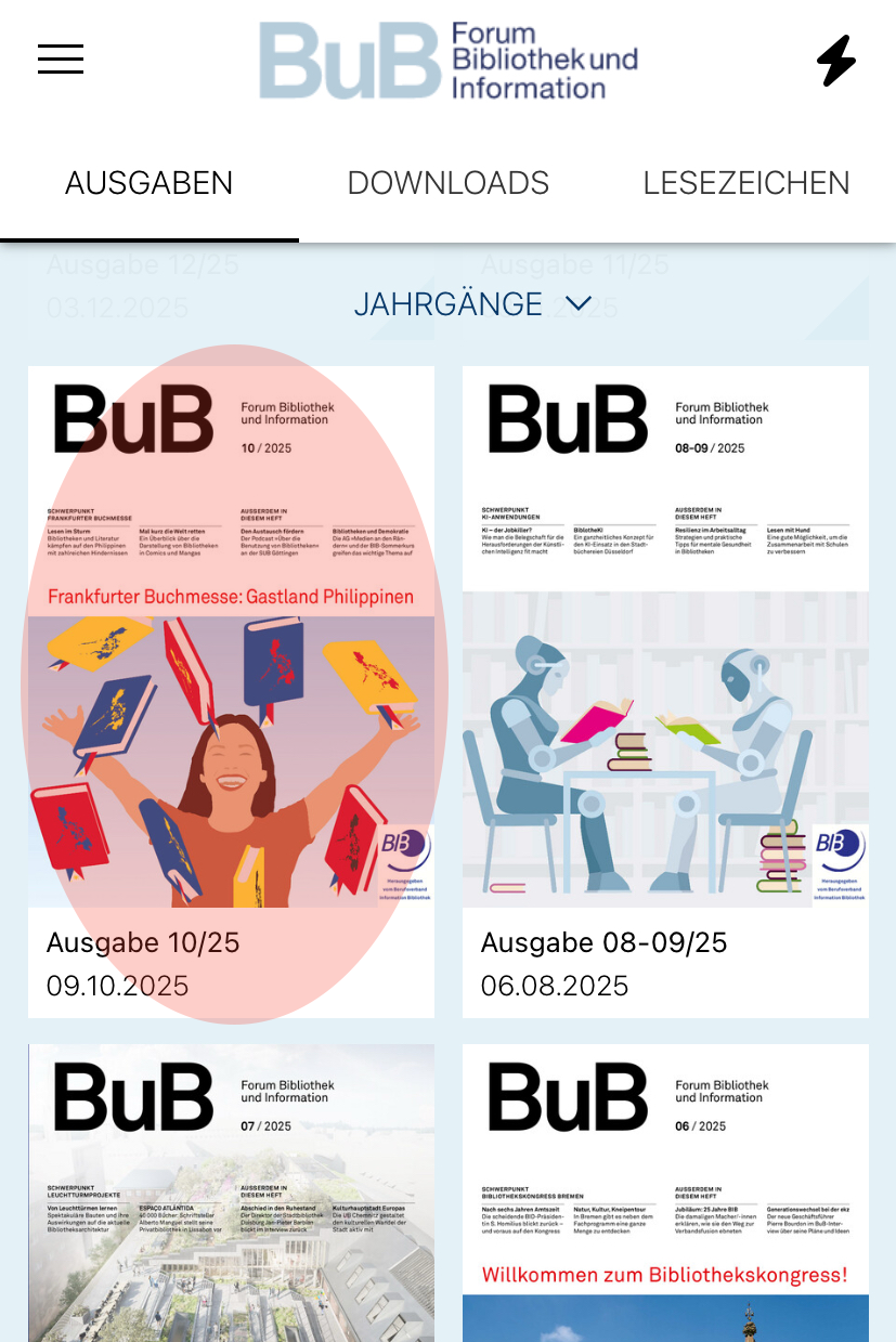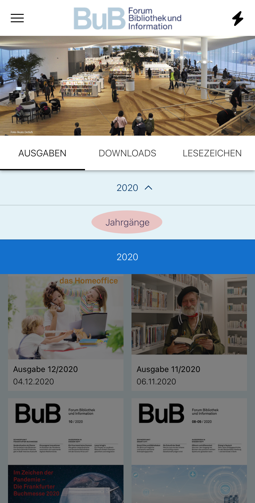 2. Tippen Sie auf »Jahrgänge«, um sich die BuB-Ausgaben eines bestimmten Jahres anzeigen zu lassen.