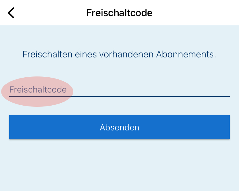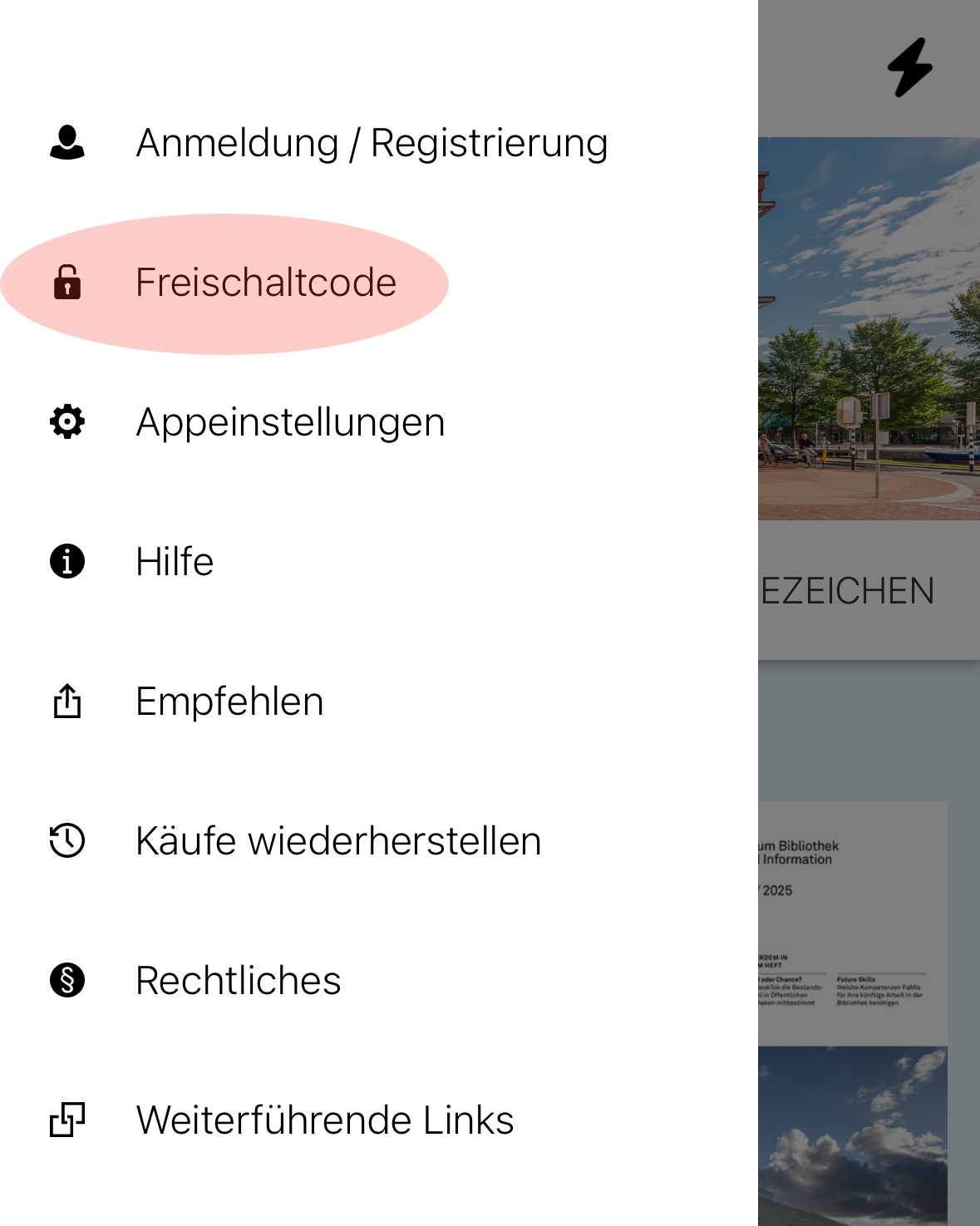 Tippen Sie im Hauptmenü auf »Freischaltcode«.