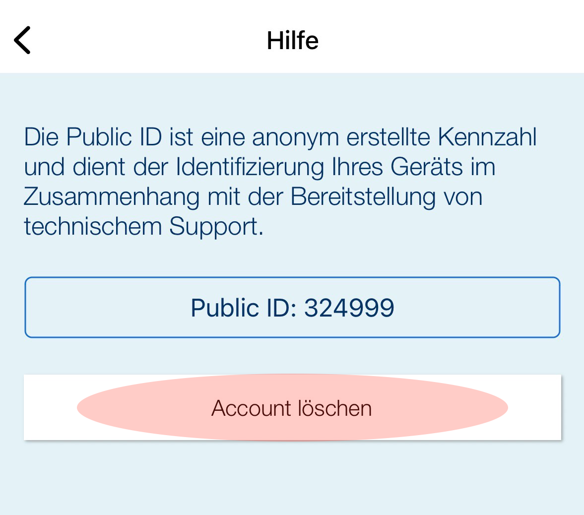 Tippen Sie auf »Account löschen«, um Ihren Account zu entfernen.