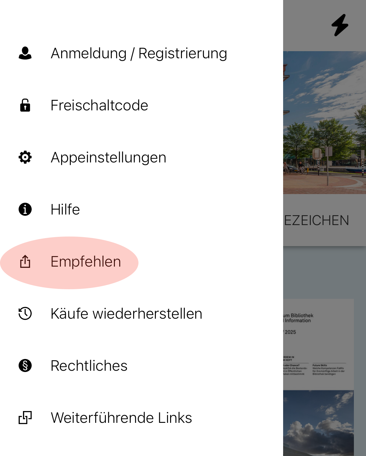 Wenn Sie den Menüpunkt »Empfehlen« antippen, …