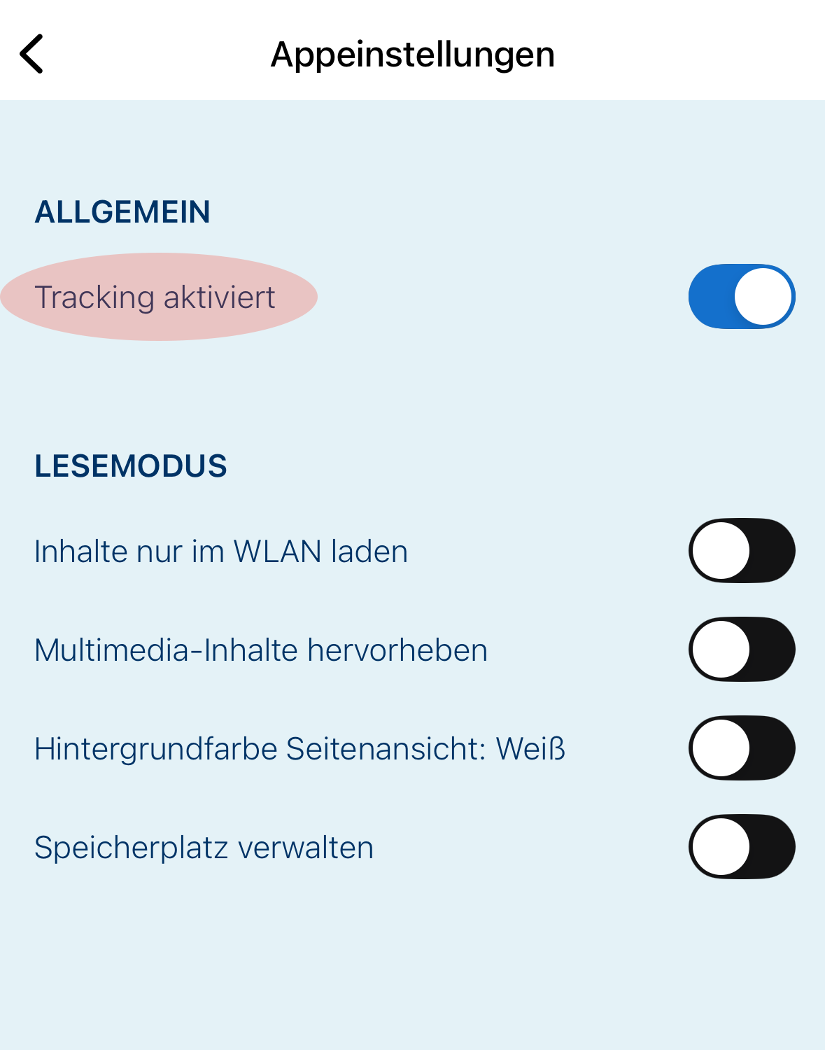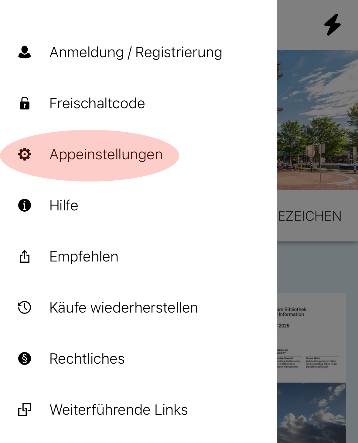 Unter »App-Einstellungen« können Sie verschiedene Einstellungen zur Nutzung der App vornehmen.