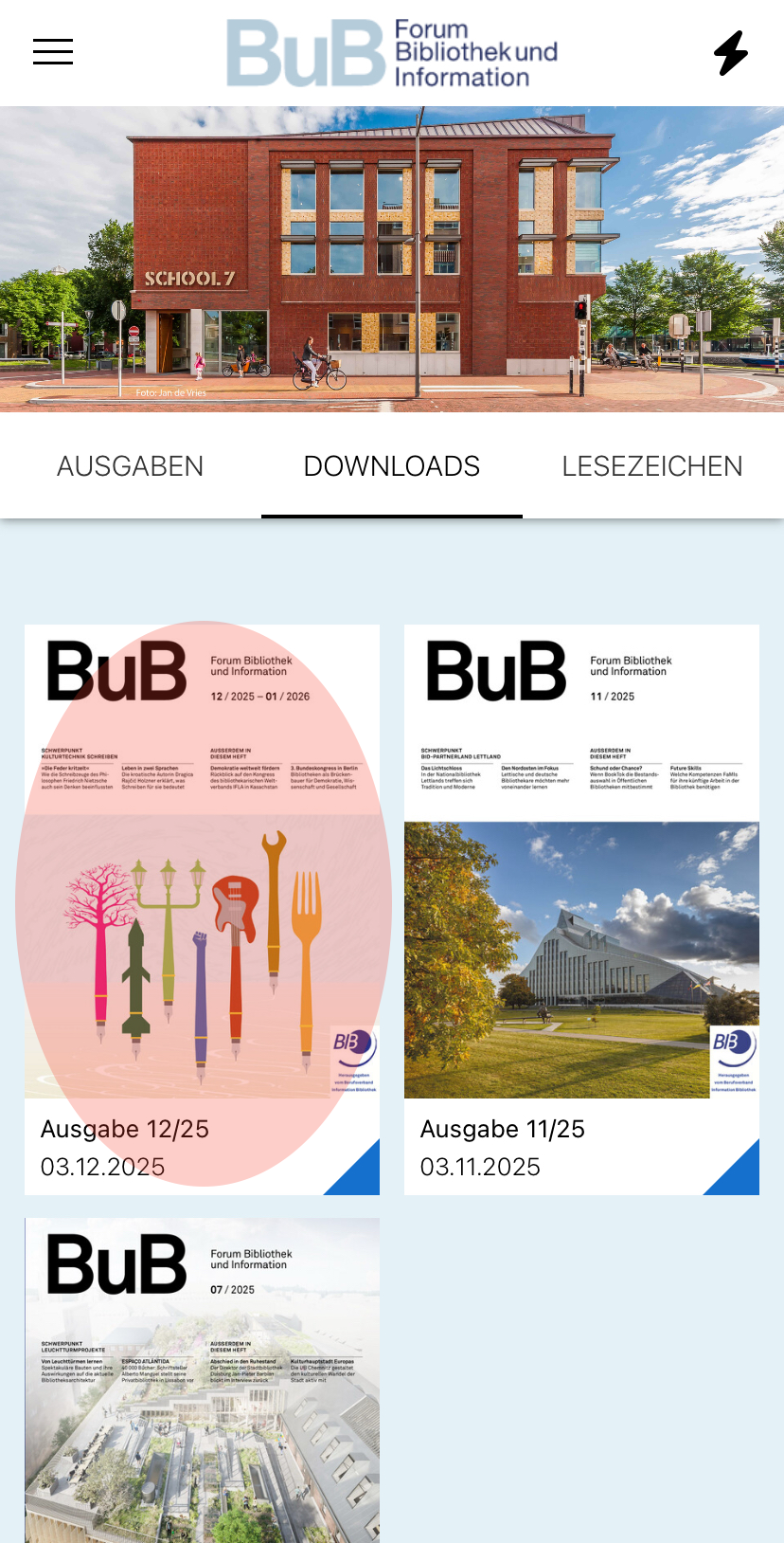 1.1 Tippen Sie auf die gewünschte BuB-Ausgabe, um sie zu öffnen.