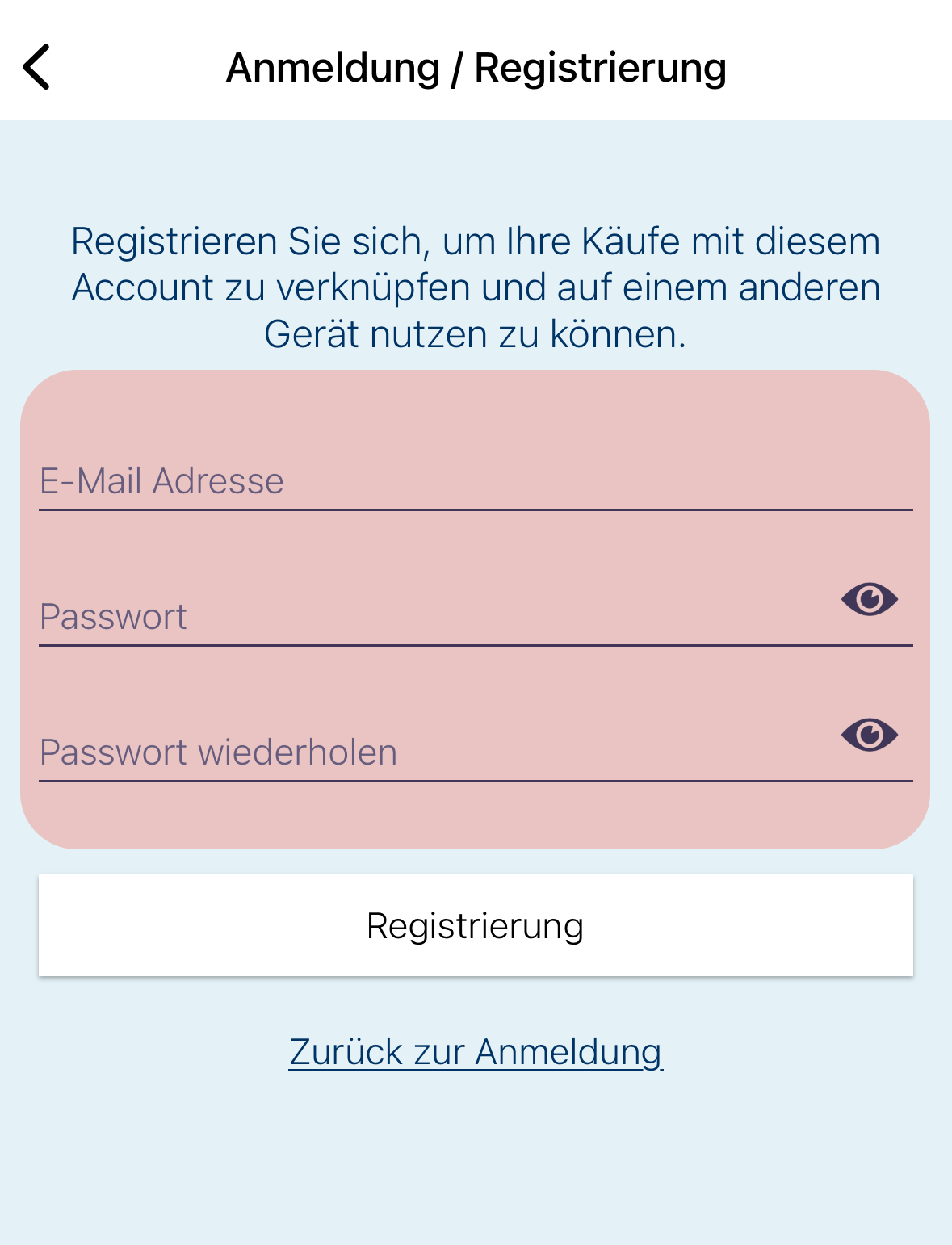 Wenn Sie Einzelausgaben über Apple, Google Play oder Amazon App Store gekauft haben, können Sie diese ebenfalls auf anderen Geräten freischalten, indem Sie sich auf diesen Geräten mit Ihrer Apple-ID, Ihrem Google- oder Amazon-Konto anmelden und dann den Menüpunkt „Käufe wiederherstellen“ wählen.