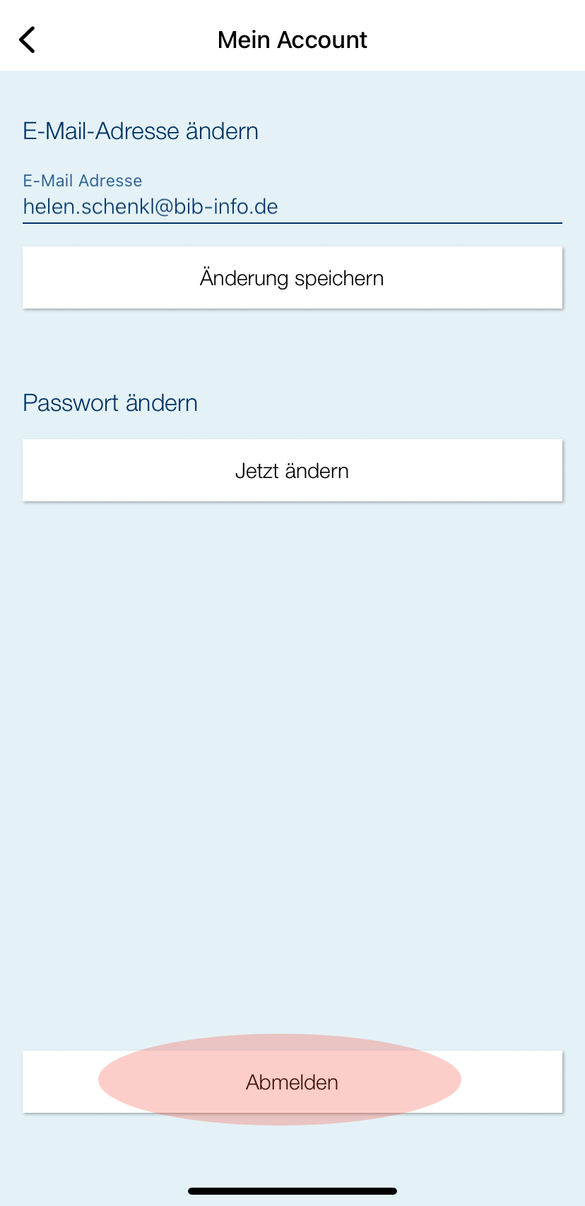 Tippen Sie auf »Abmelden«, um sich aus der App auszuloggen.
