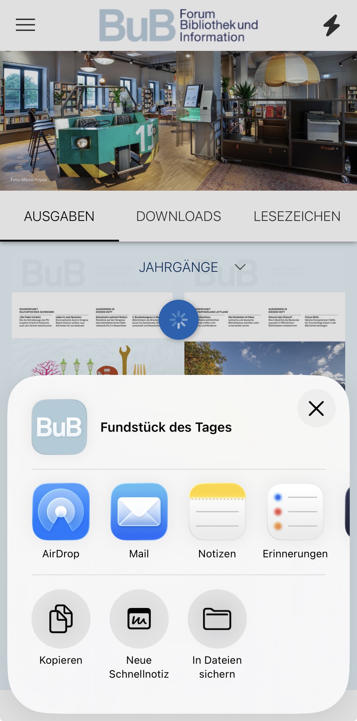 Sobald Sie eine BuB-Ausgabe öffnen, wird sie automatisch heruntergeladen und im Download-Bereich gespeichert.