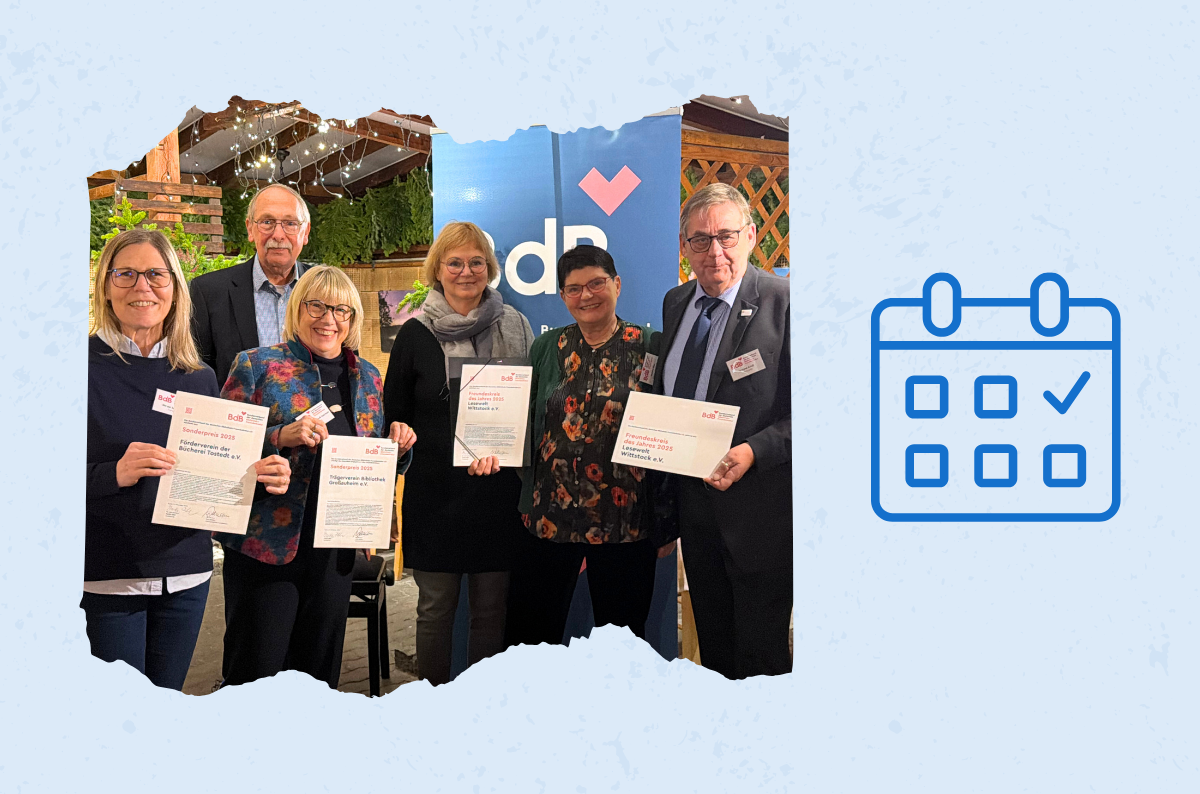 Als Bibliotheks-Freundeskreis des Jahres 2025 wird in diesem Jahr der Verein Lesewelt Wittstock e.V. aus Brandenburg ausgezeichnet. Der Preis wird zum elften Mal vom Bundesverband der deutschen Bibliotheks-Freundeskreise (BdB) verliehen.